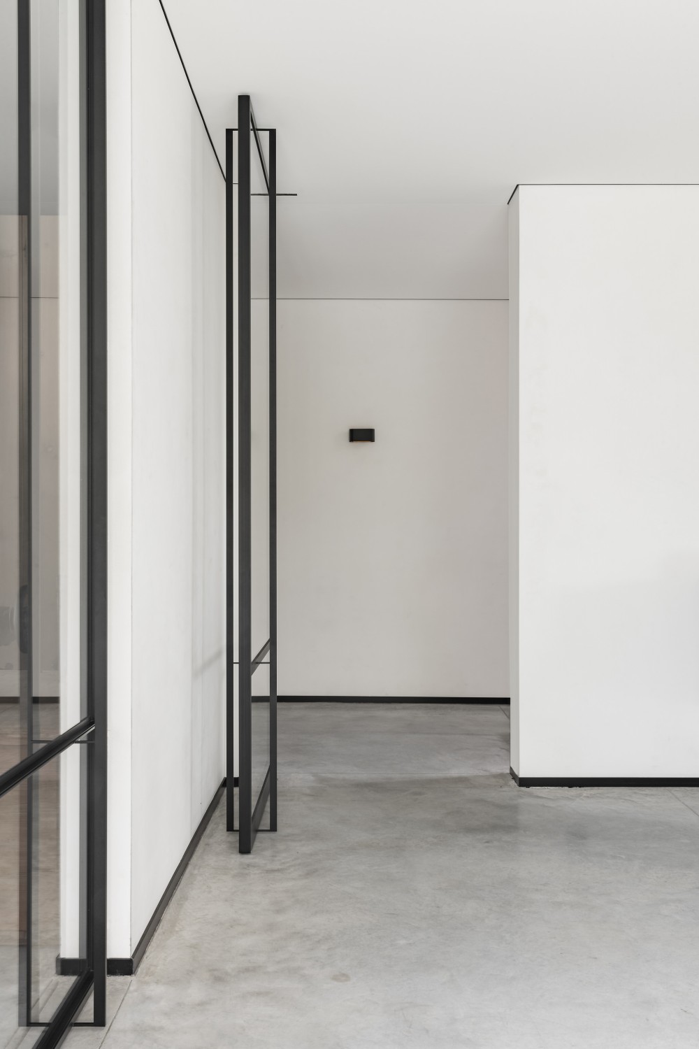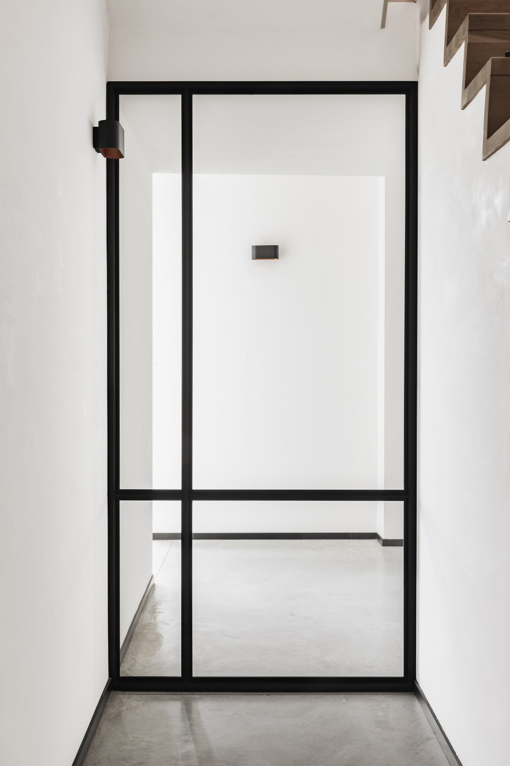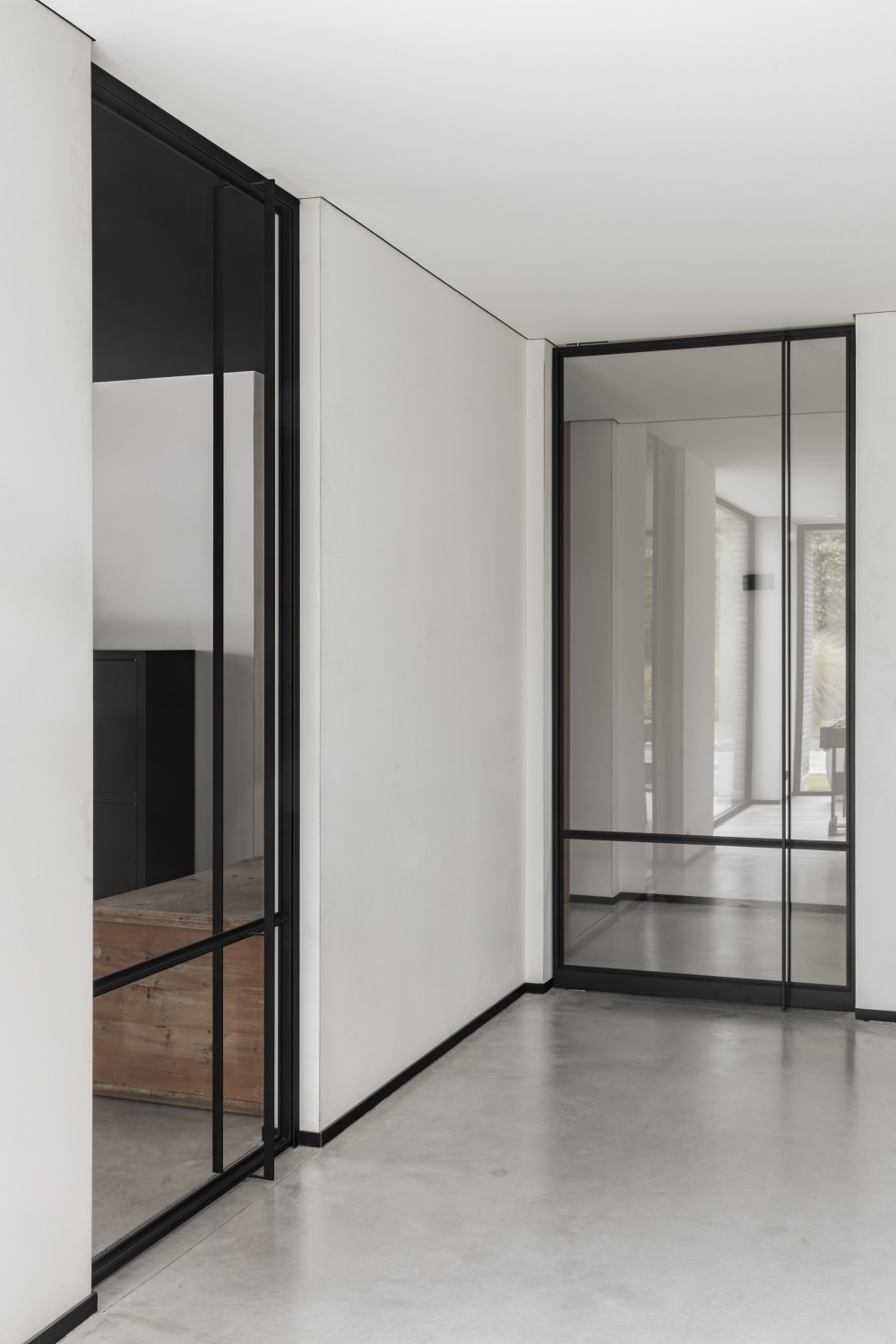 Bij deze klant in Wijtschate mochten we het interieur voorzien van een stalen scharnierdeur, pivoterende deur en vast raam